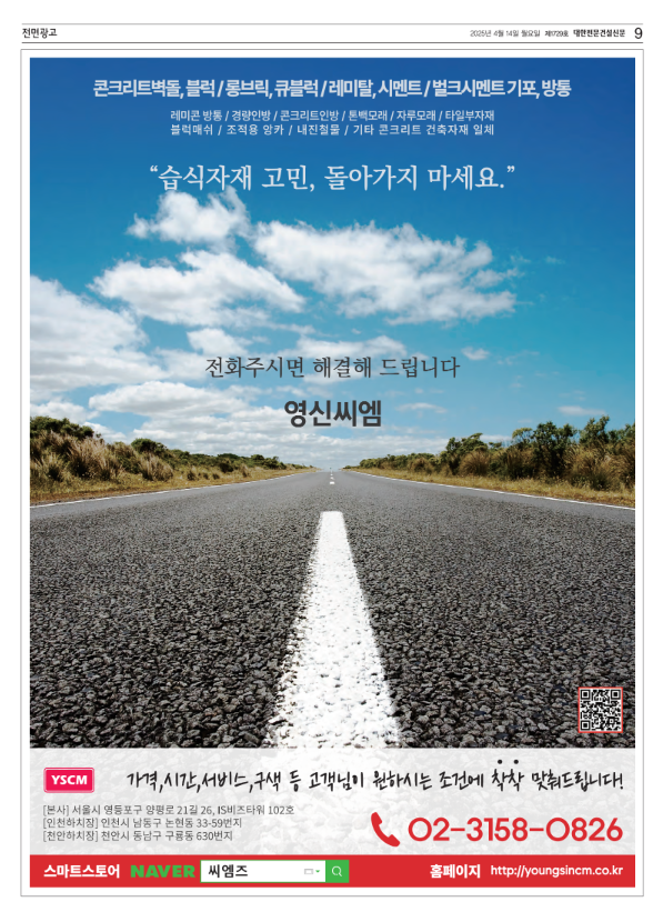 2025.04.14 대한전문건설신문에 게재된 영신씨엠 지면 광고입니다.