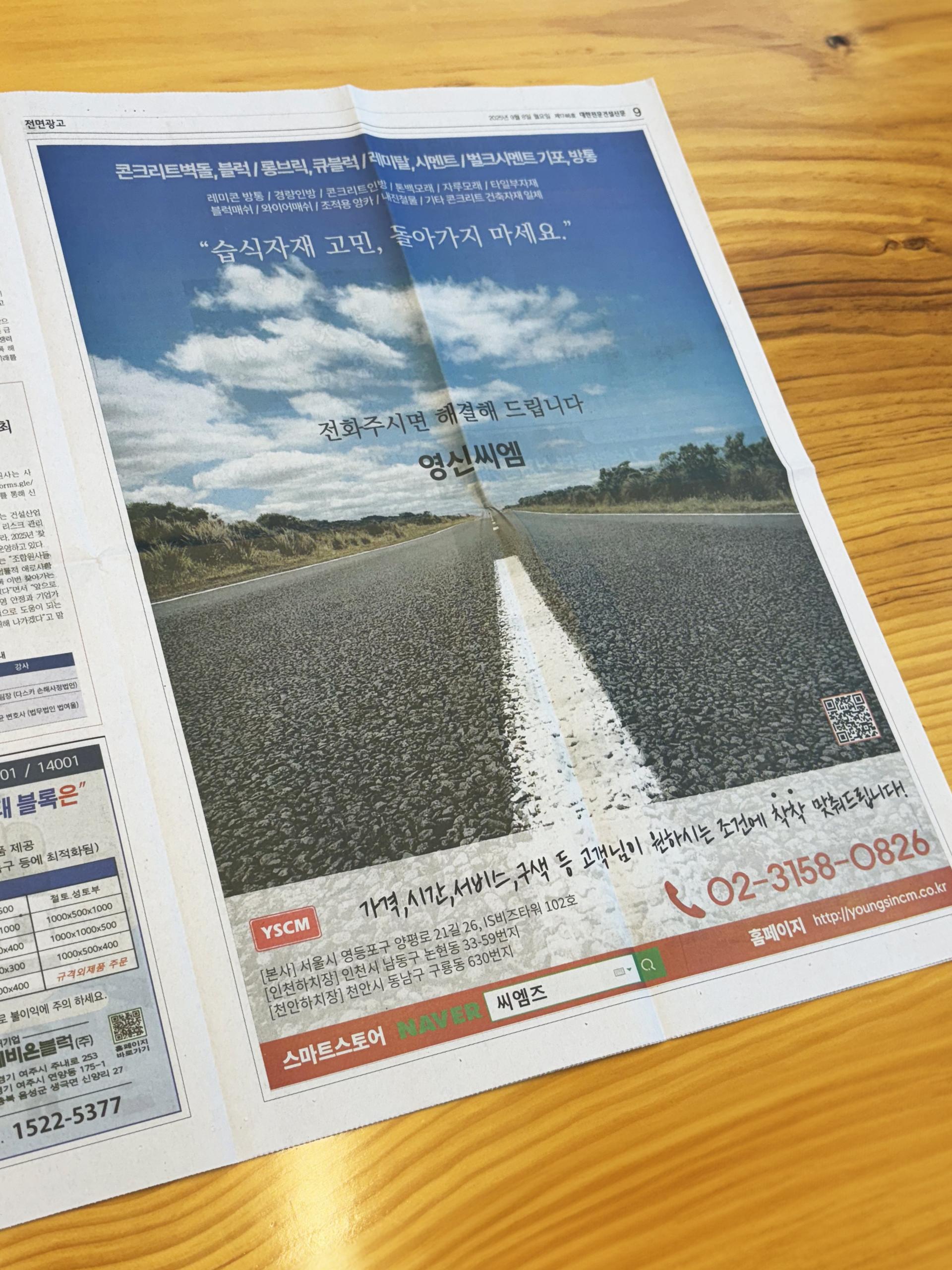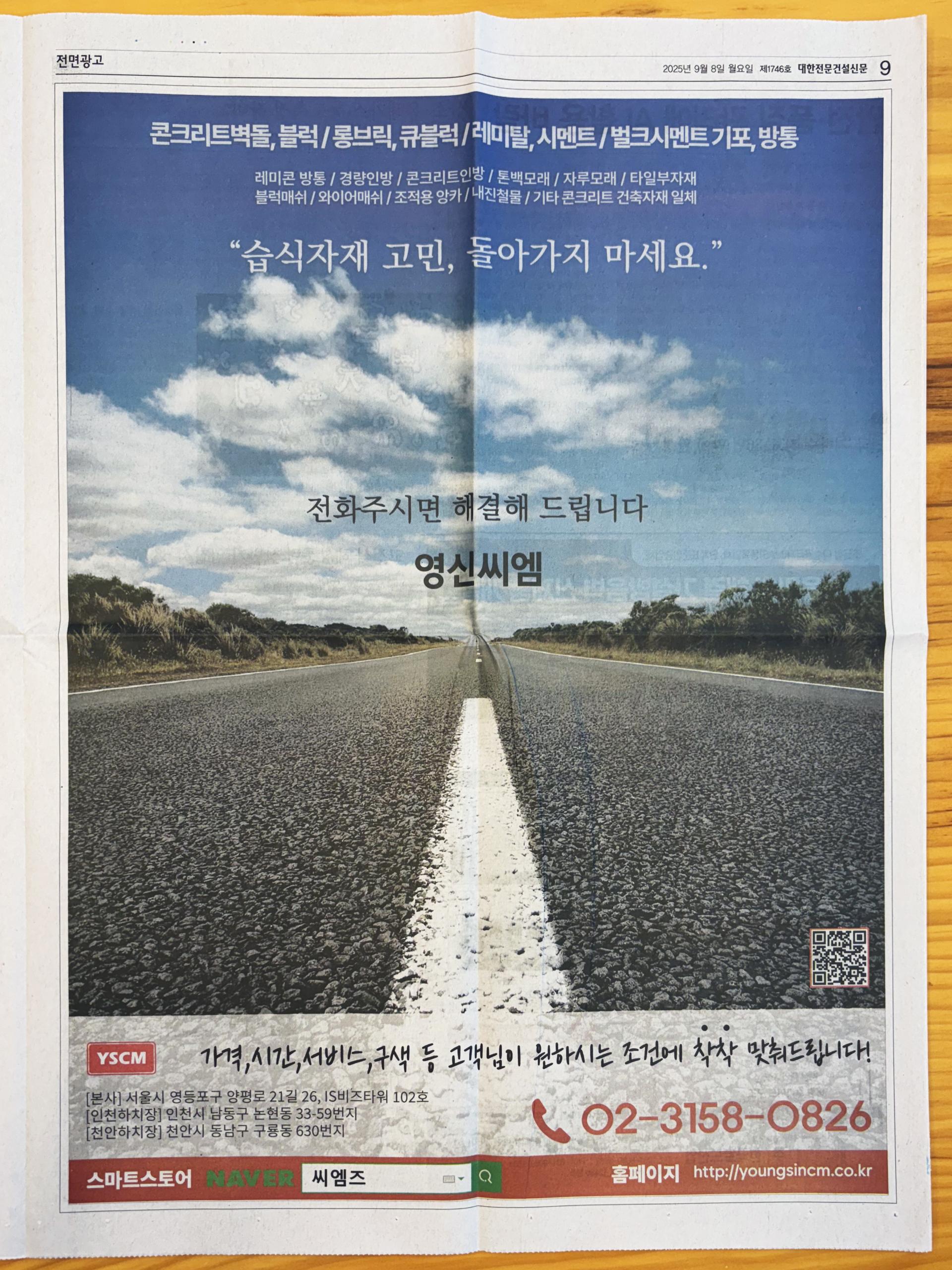 2025.09.08 대한전문건설신문에 게재된 영신씨엠 지면 광고입니다.