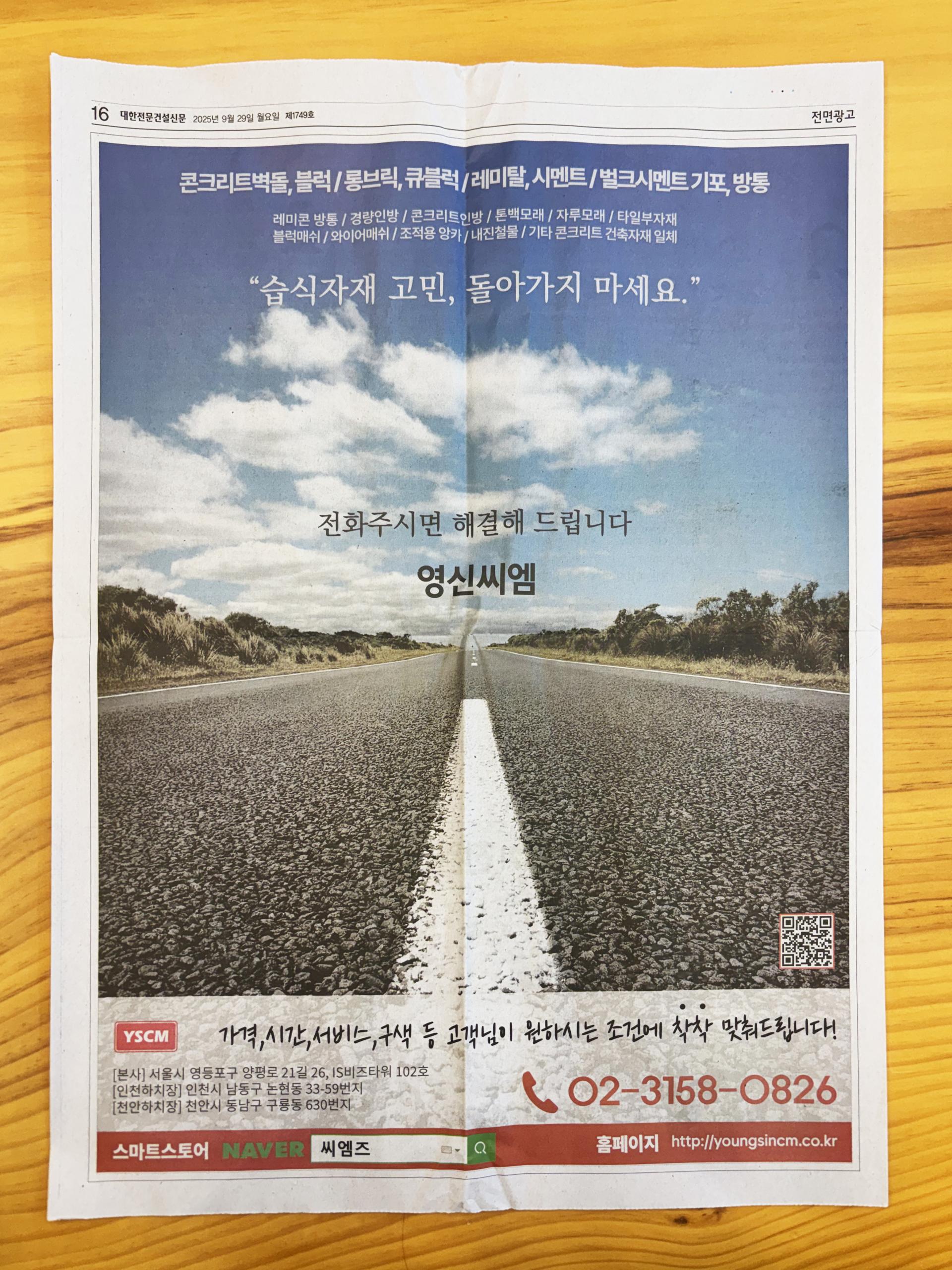 2025.09.29 대한전문건설신문에 게재된 영신씨엠 지면 광고입니다.